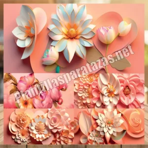 - Hermosas Plantillas Para Tazas de Flores 3D Rosadas